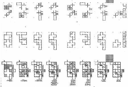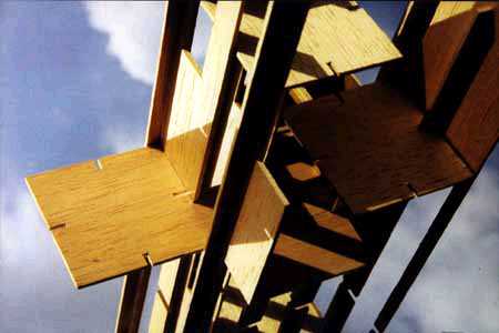 Maqueta del proyecto y, detrás (click!), diagramas estructurales y de techumbre.