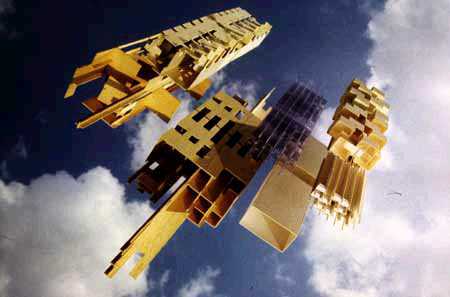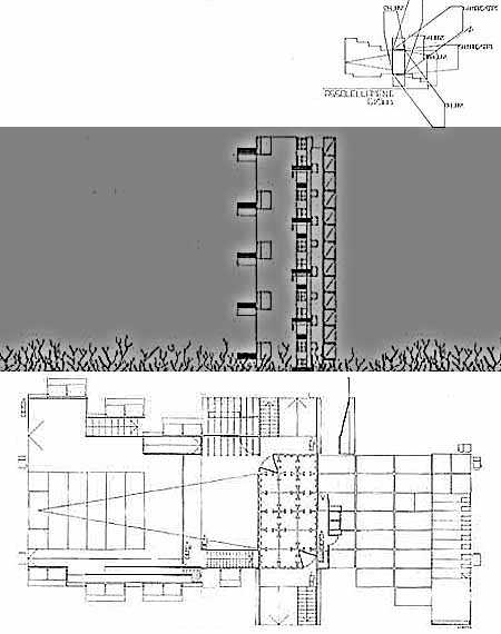 Maquetas del proyecto y (click!) diagrama de soleamiento, alzado y planta generales.